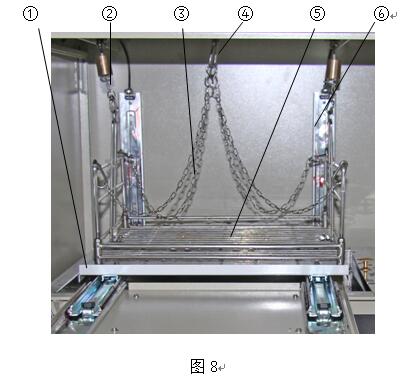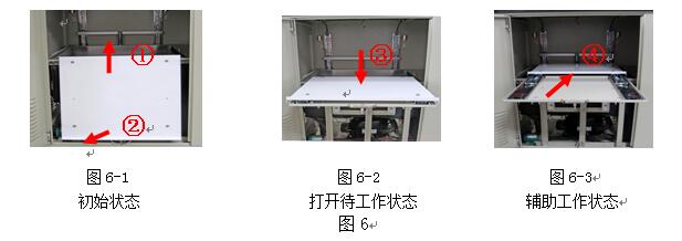 試驗完成后,一般可把活動托板處于打開待工作狀態(tài),如果儀器長期不用而需要關(guān)閉前門,需要將活動托板復(fù)原到初始位置,方法如下。