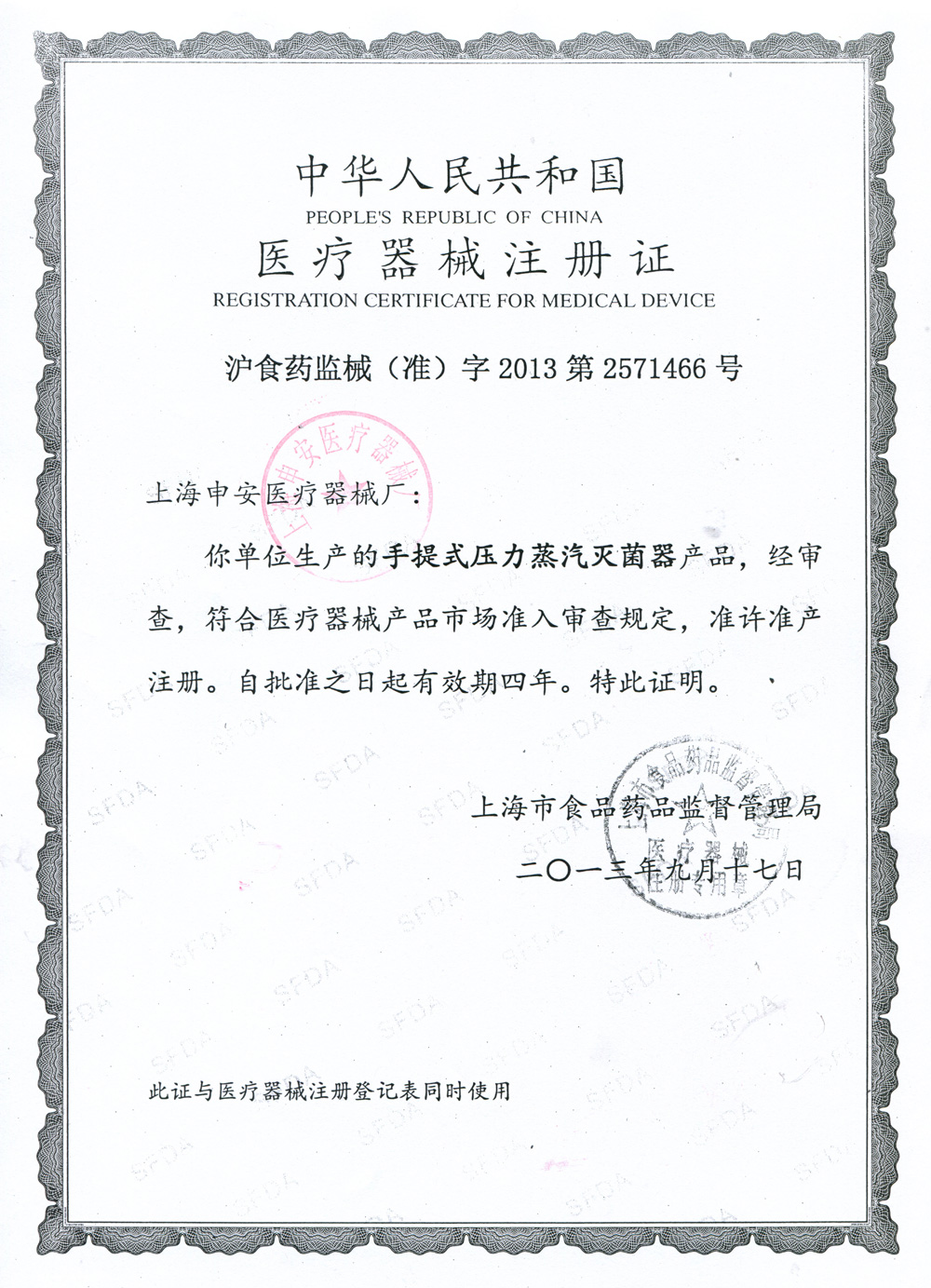 滬食藥監(jiān)械(準)字2013第2571466號